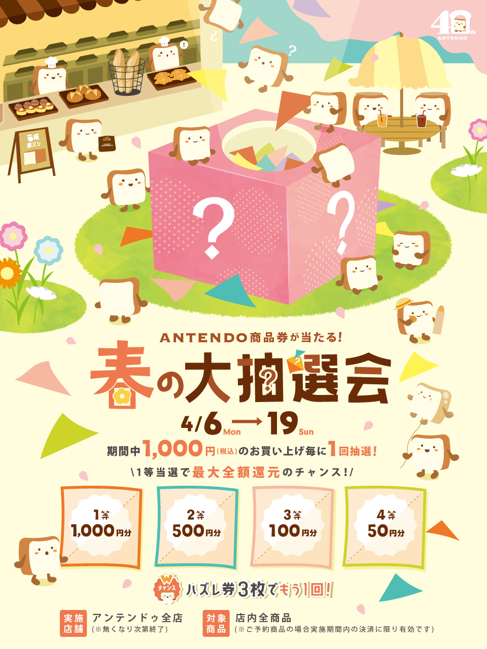 アンテンドゥ全店にて春の大抽選会を開催いたします。
